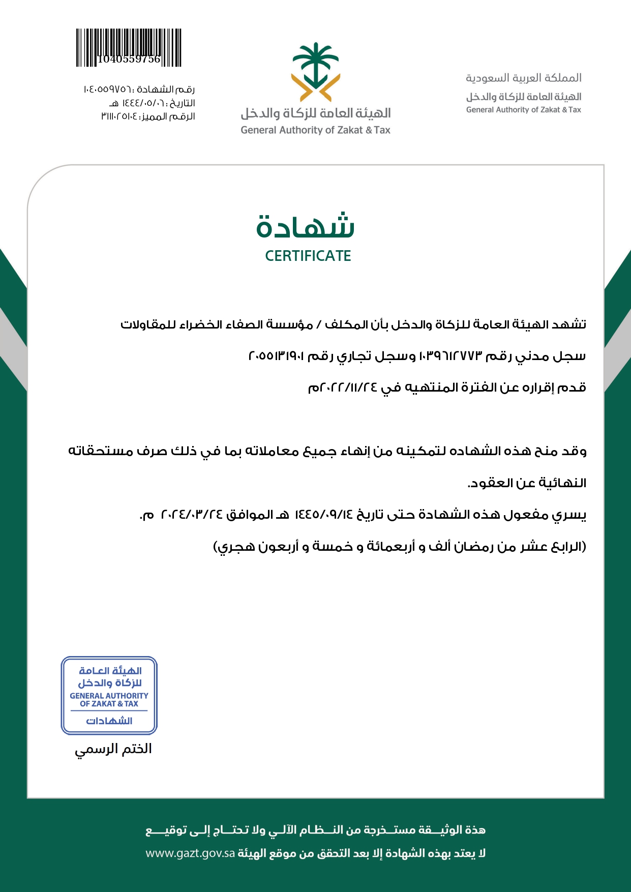 Certificate